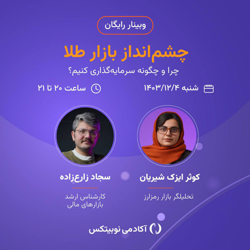 وبینار «چشمانداز بازار طلا» روز شنبه ۴ اسفند ۱۴۰۳، ساعت ۲۰:۰۰ از طریق وبسایت آکادمی نوبیتکس و شبکههای اجتماعی مجله نوبیتکس مانند تلگرام، توییتر، آپارات و یوتیوب پخش خواهد شد.