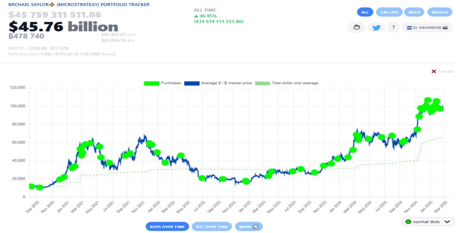 استراتژی اکنون ۴۷۸,۷۴۰ بیتکوین به ارزش تقریبی ۴۷ میلیارد دلار در اختیار دارد، در حالی که مجموع سرمایهگذاریهای آن به ۳۱.۱ میلیارد دلار میرسد.