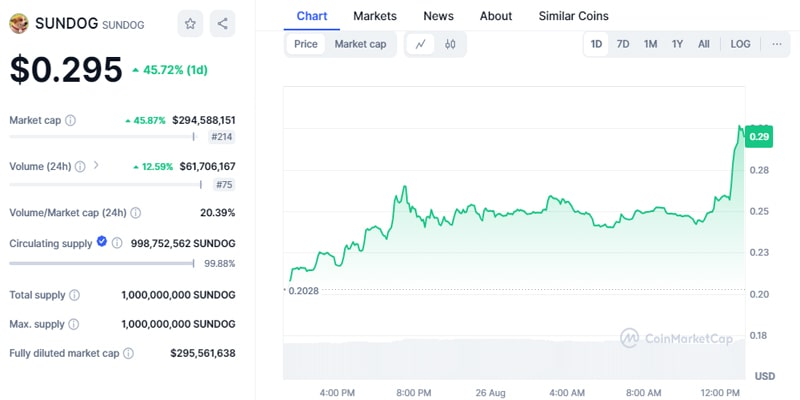 لازم به ذکر است که سانداگ (SUNDOG) به عنوان بزرگترین پروژه میمکوین در اکوسیستم ترون، با رشد بیش از ۴۵ درصدی خود در ۲۴ ساعت گذشته، به قیمت ۰.۳ دلار رسیده و رکورد تاریخی خود را شکسته است. ارزش بازار این میمکوین در حال حاضر بیش از ۲۹۴ میلیون دلار است.