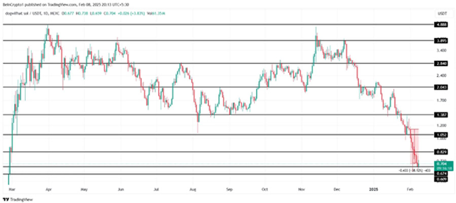 در حال حاضر، WIF بالای سطح ۰.۶۷۴ دلار معامله می‌شود، ولی اگر این حمایت شکسته شود، قیمت آن ممکن است به ۰.۶ دلار یا حتی ۰.۵ دلار کاهش یابد.
