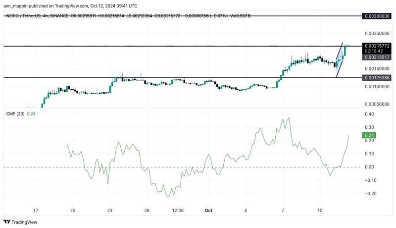 این رشد نشان میدهد که NEIRO همچنان پتانسیل صعودی خود را حفظ کرده و ممکن است در کوتاهمدت به سطوح مقاومتی بالاتر مانند ۰.۰۰۳ دلار برسد.