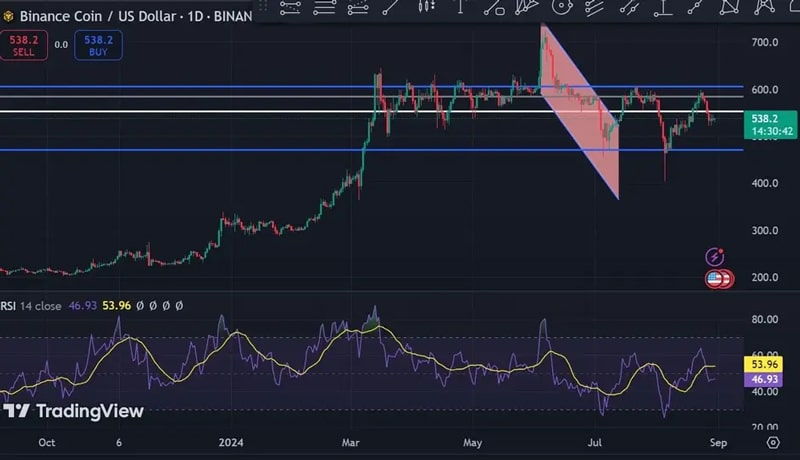 این روند منفی فاندینگ ریت بایننس، تأثیر قابلتوجهی بر بایننس کوین داشته است. طی ۳۰ روز گذشته، بایننس کوین کاهش ۷.۶۲ درصدی داشته و قیمت آن به ۵۳۵.۴۸ دلار رسیده است.
