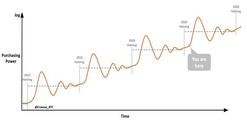 او اشاره میکند که وقوع حبابهای قابل پیشبینی هر چهار سال یکبار، شاید عجیب به نظر برسد، اما بیتکوین تنها دارایی است که عرضه آن هر چهار سال نصف میشود.