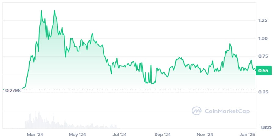این پلتفرم با ارائه بازاری برای خدمات هوش مصنوعی، امکان همکاری و نوآوری بدون محدودیتهای کنترل متمرکز را فراهم میکند. قیمت توکن AGIX در حال حاضر ۰.۵۵ دلار است که نسبت به یک سال گذشته حدود ۸۹ درصد افزایش داشته است. تقاضا برای خدمات هوش مصنوعی به دلیل ضعف راهکارهای متمرکز رو به افزایش است و این توکن را در موقعیتی رقابتی قرار داده است.